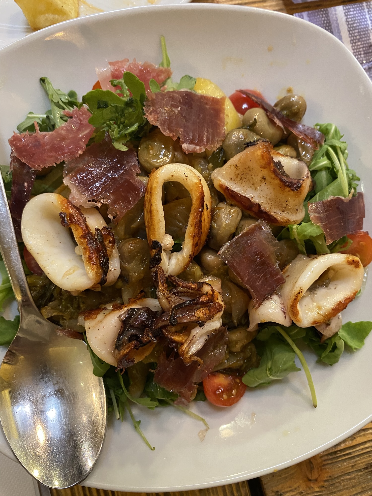 Before heading to the coast, we fueled up at El Pilon with a table full of tapas—papas bravas, grilled octopus, razor clams, stews and calamari salad. Everything was delicious and classically Spanish.