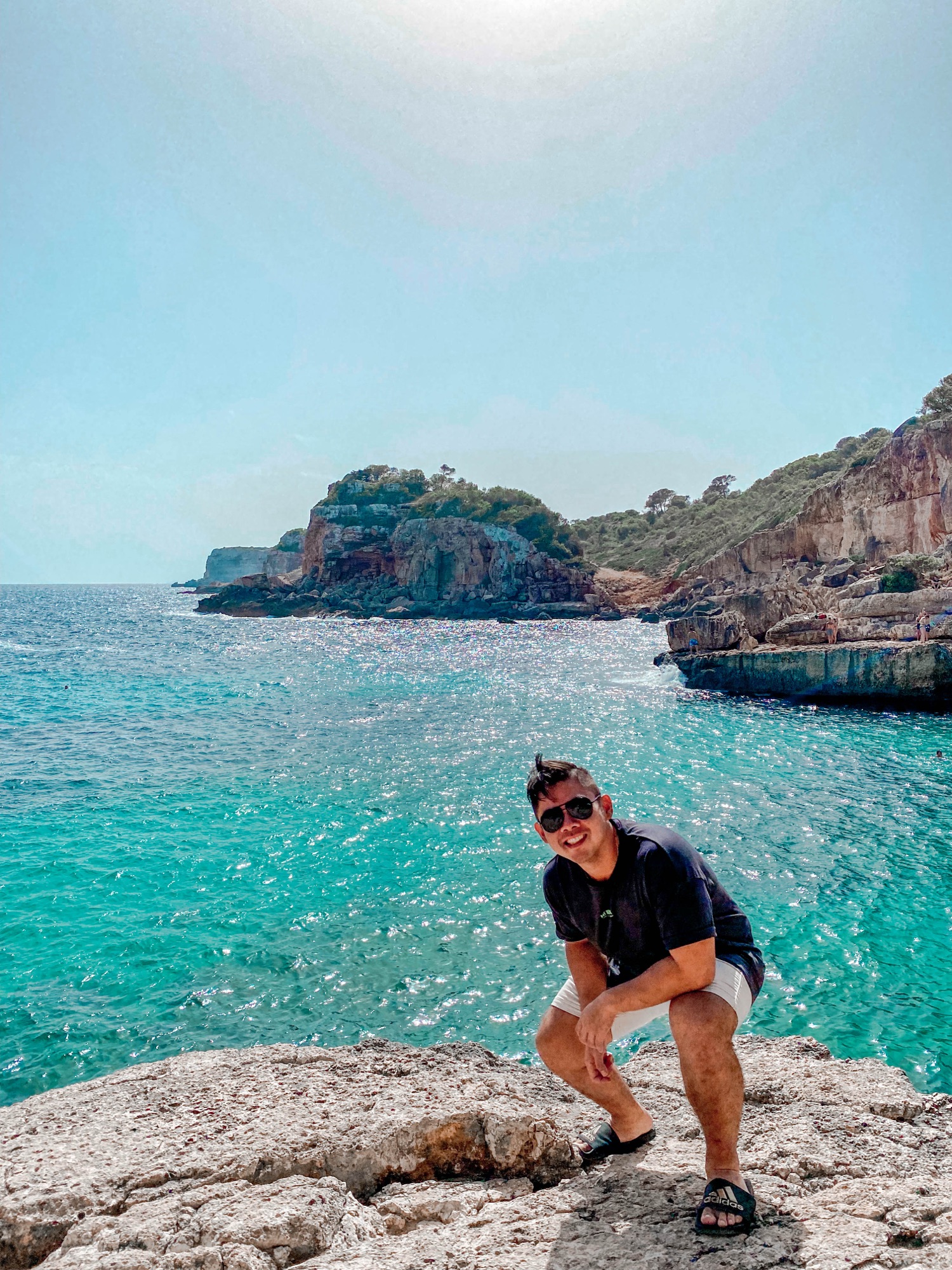 After lunch, we had the beach moment of the trip. At this time, we didn’t rent a car yet (which we should’ve). In 2022, taxis costed ~80-100 EUR one way to go from Palma to Calo des Moro. The taxi brought us to the entrance of the beach where there was a short hike down to the cove, which rewarded us with postcard-perfect views and turquoise waters framed by cliffs. The beach is small, so arrive early if you can —and bring water and snacks. You can easily find a taxi back to Palma, but again if you can rent a car, I highly recommend it.