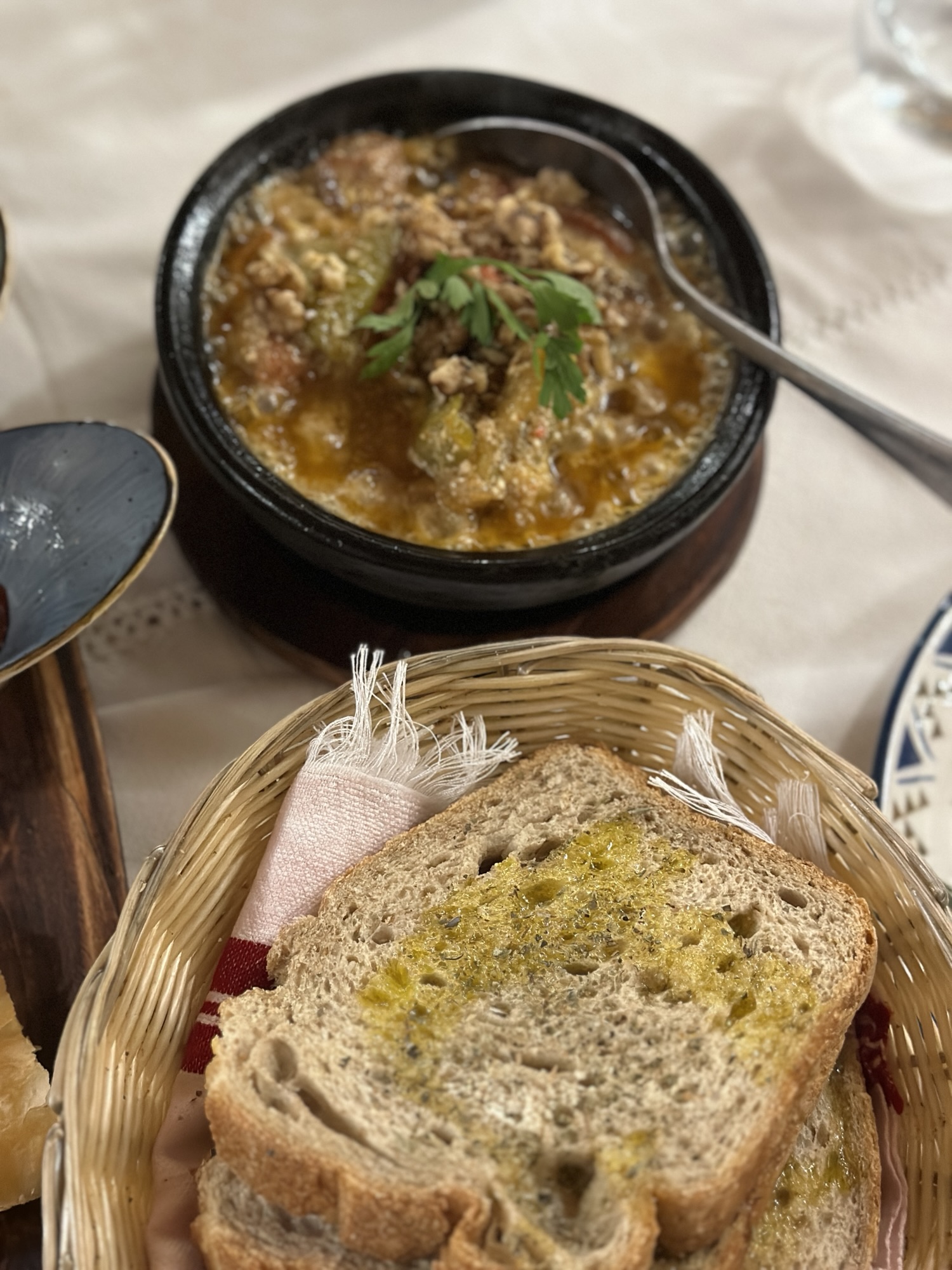 After climbing back down, we crossed the Gorica Bridge and had dinner at Eni Traditional Food; a Berat-exclusive spot serving dishes you won’t find elsewhere on the trip. This is the place to get all the local specialties.