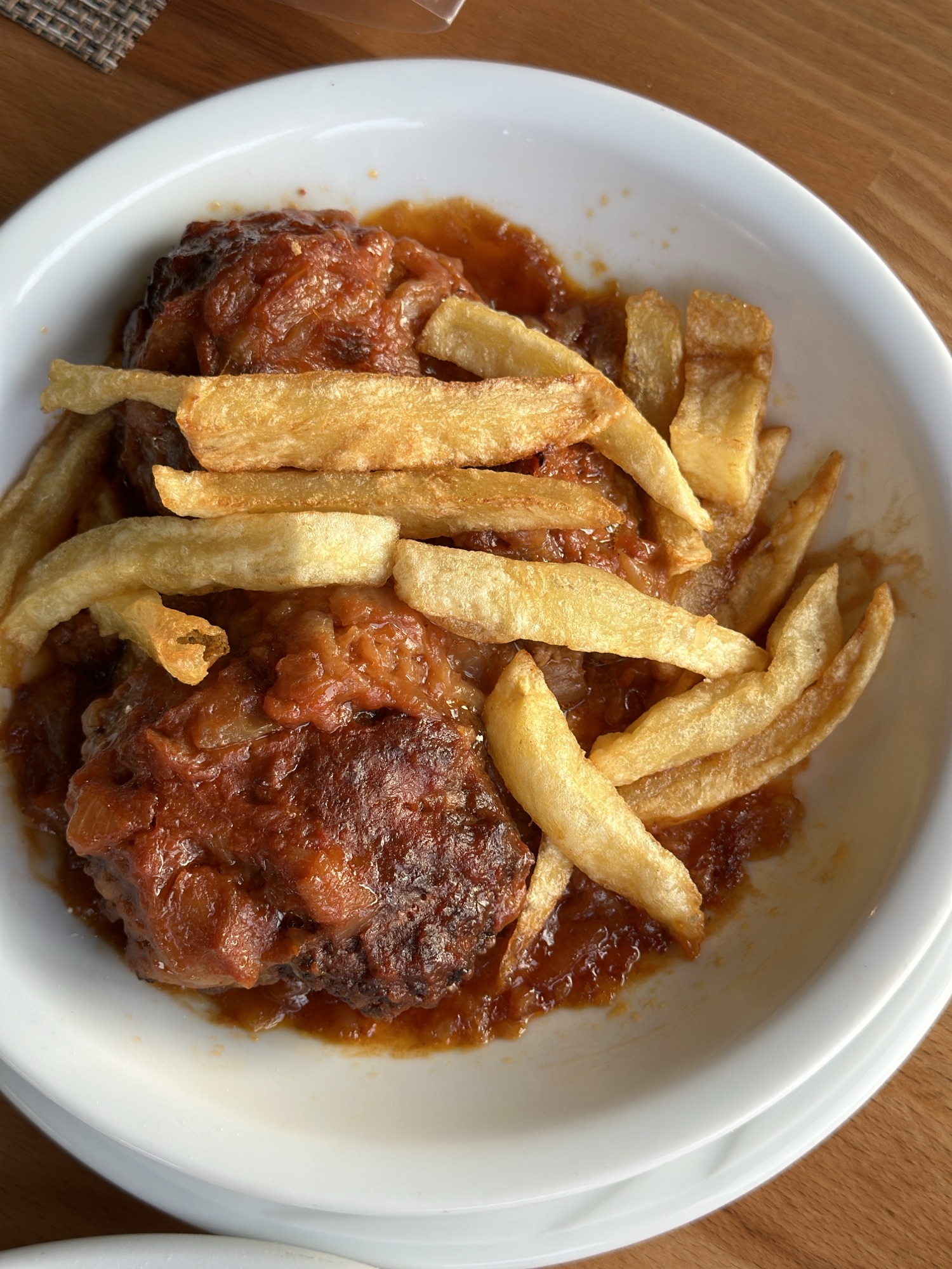 One of my favourite meals of the trip — an outdoor garden restaurant serving traditional Albanian food. It’s exactly what you want after a morning of walking: shaded, relaxed, and deeply local.
