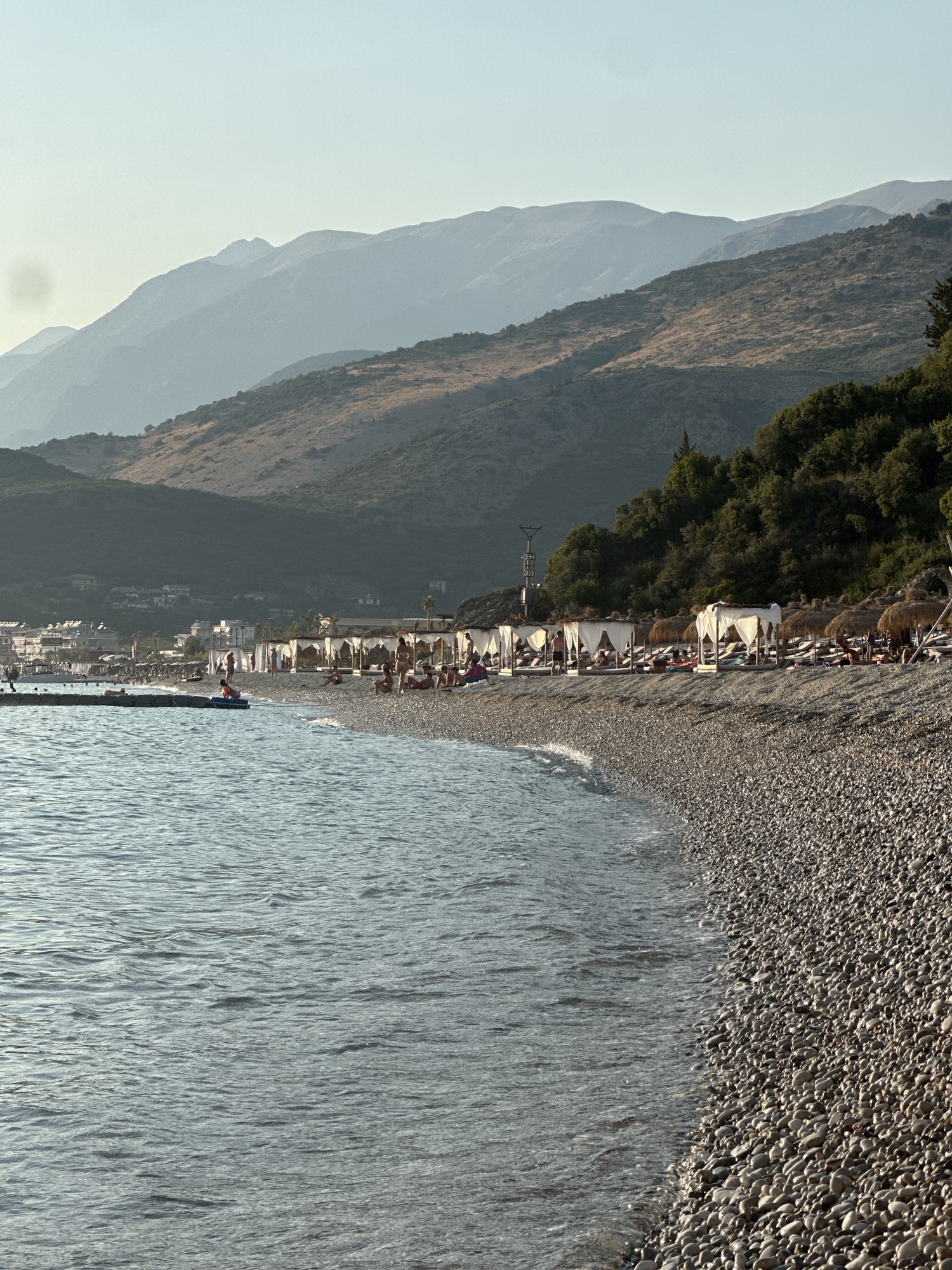 Himare itself is a laid-back coastal town. Our Airbnb wasn’t directly on the beach, but it was an easy walk down to Plazhi i Livadhit, where we spent the afternoon swimming and watching the sun set over the Adriatic. If you’ve only ever seen beaches in Croatia or Greece, this will surprise you; cleaner, quieter, and with almost no crowds.