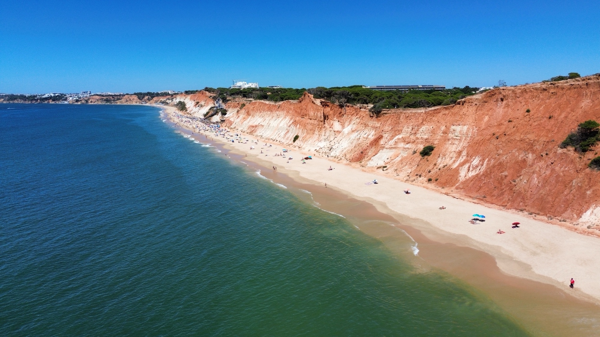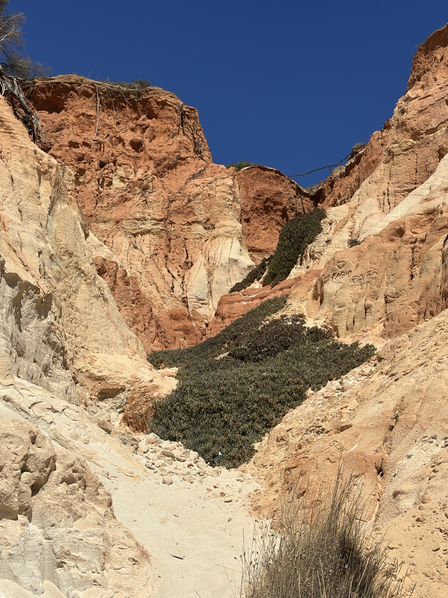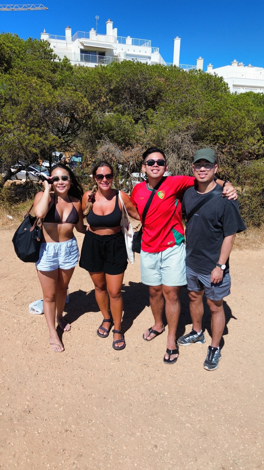 On the drive back east toward Faro, we stopped at Falesia Beach — which we’d spotted from the boat cruise the night before. The red sand cliffs are stunning and completely different from anything else we’d seen on the trip. We even had a proper Portuguese beach donut (bola de Berlim) from one of the vendors, which is mandatory if you’re at a beach in Portugal. A great way to close out the trip — one last beach, one last donut, then back to Faro to drop off the car and fly out.