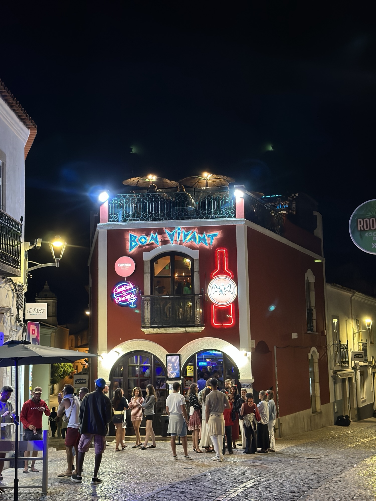 Old Town Albufeira is made for wandering. We found the famous Albufeira tunnel which leads you into the strip, then moved between Vertigo Bar & Kitchen (karaoke — yes, do it), Atrium, Bank, and plenty of others. You can just walk in, check the vibe, and stay or keep moving. No plan needed.
