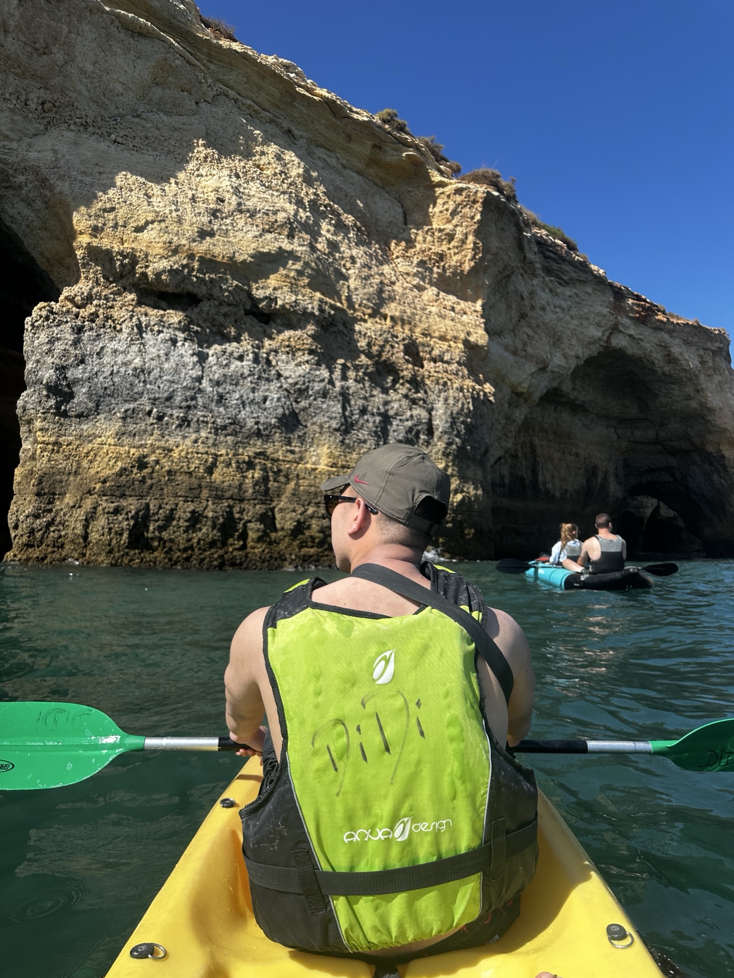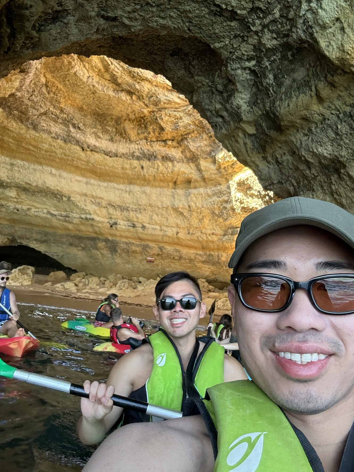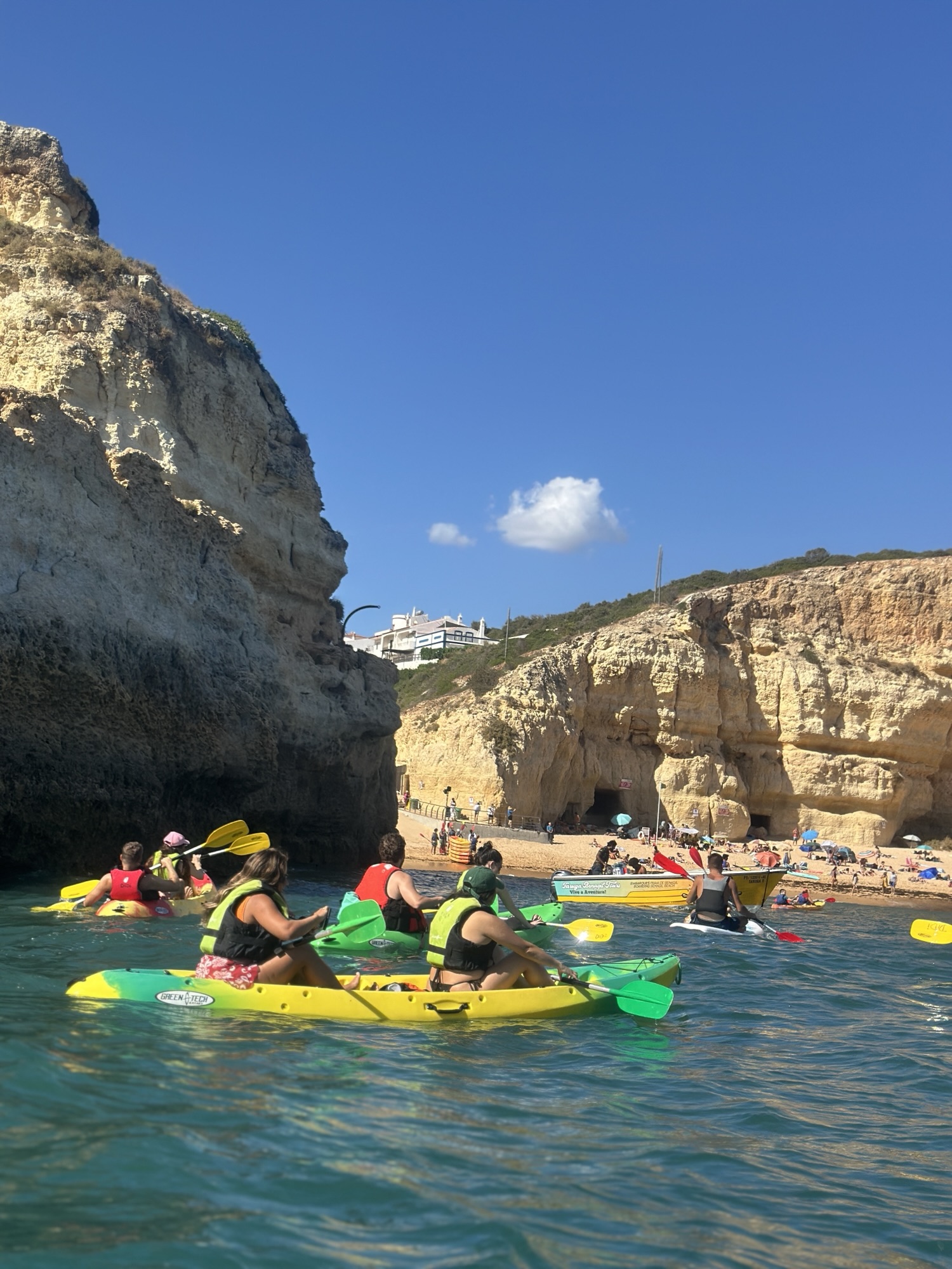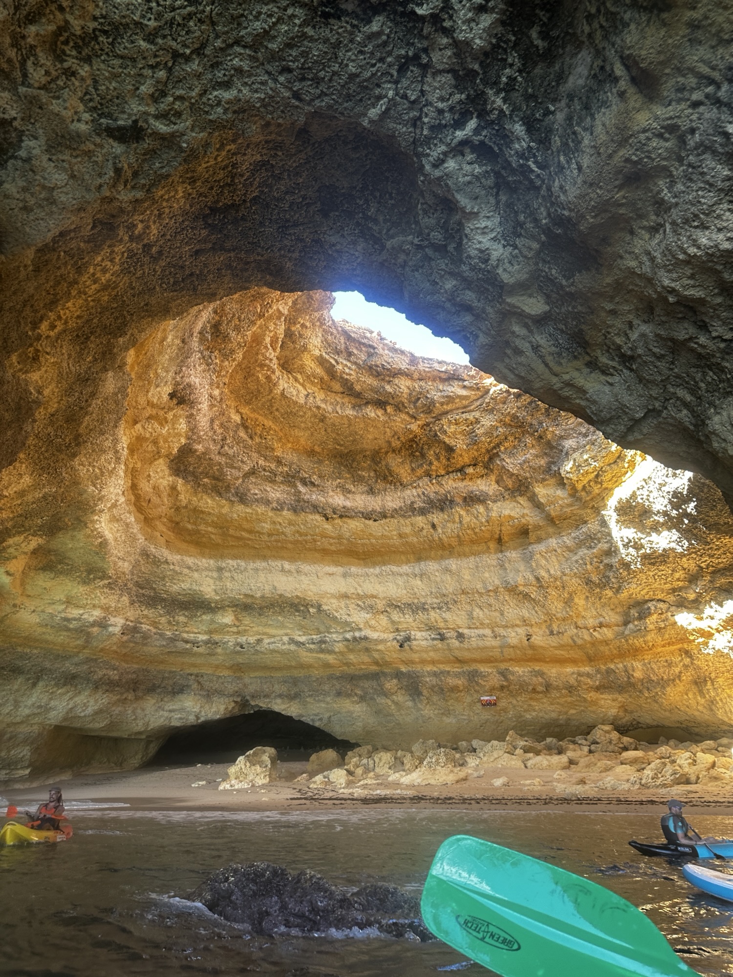 The caves are between Lagos and Albufeira, which makes this a perfect stop on your drive east. We parked along the road leading down to Praia de Benagil and booked a kayak tour with one of the booths right by the beach. There was about an hour wait for the next tour, so we just swam and chilled on the beach — which honestly wasn’t a bad way to spend that time.